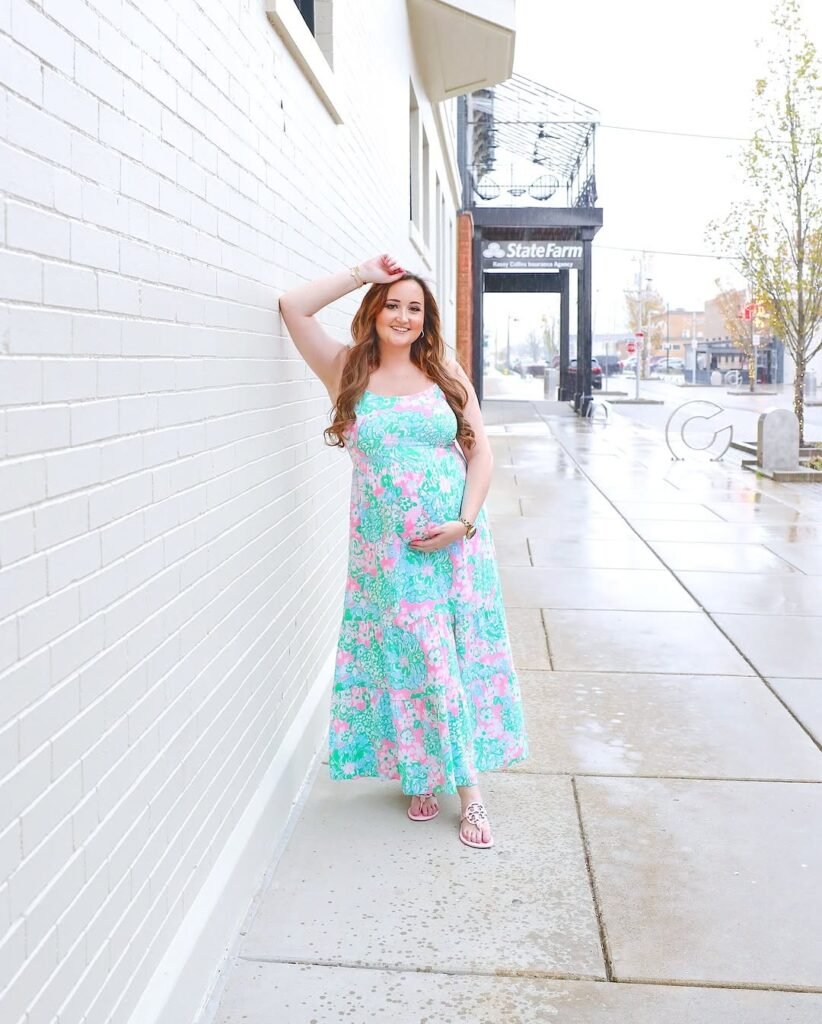 This floral maxi maternity dress is a perfect blend of comfort and beauty for any baby shower outfit ideas.