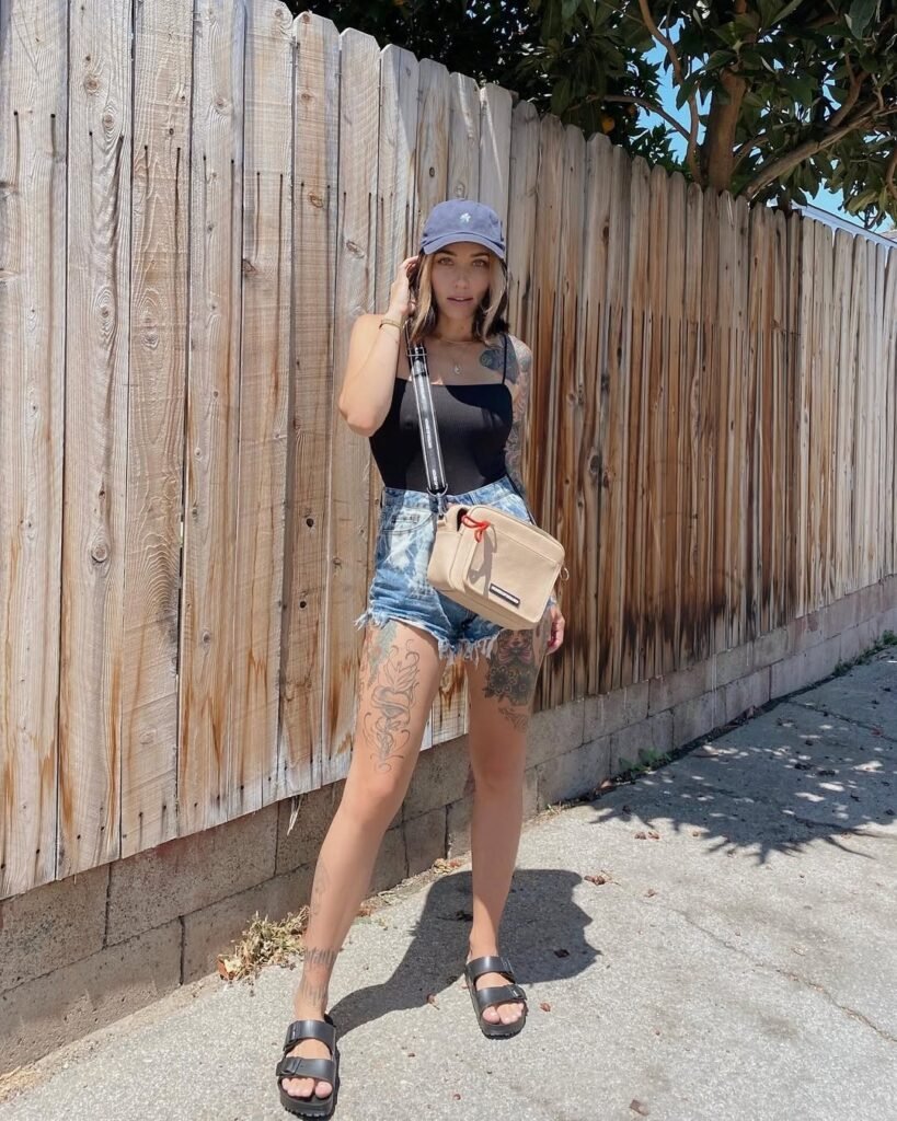 A classic black tank top paired with bleached denim shorts creates a look that feels casual, trendy, and easy to wear. It’s the perfect combination for running errands or meeting friends on a relaxed day out.