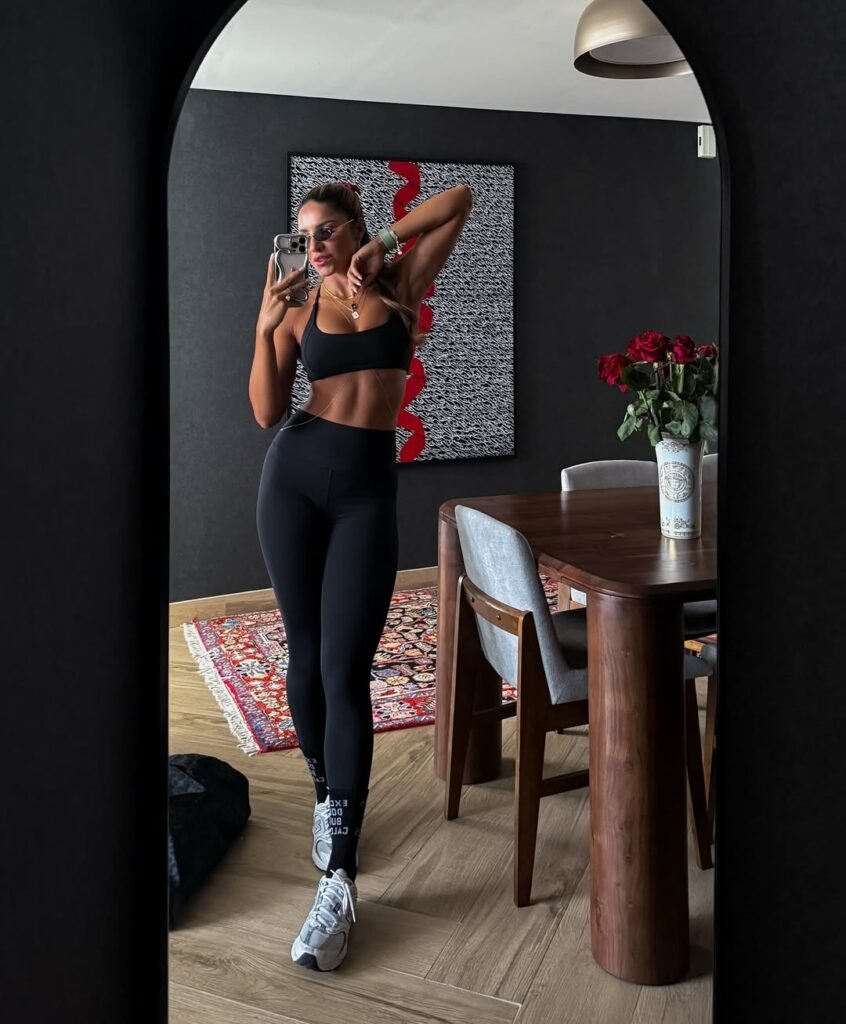 For a chic yet comfortable gym outfit, this ensemble ensures you’re ready to hit the gym while still looking great outside of it.