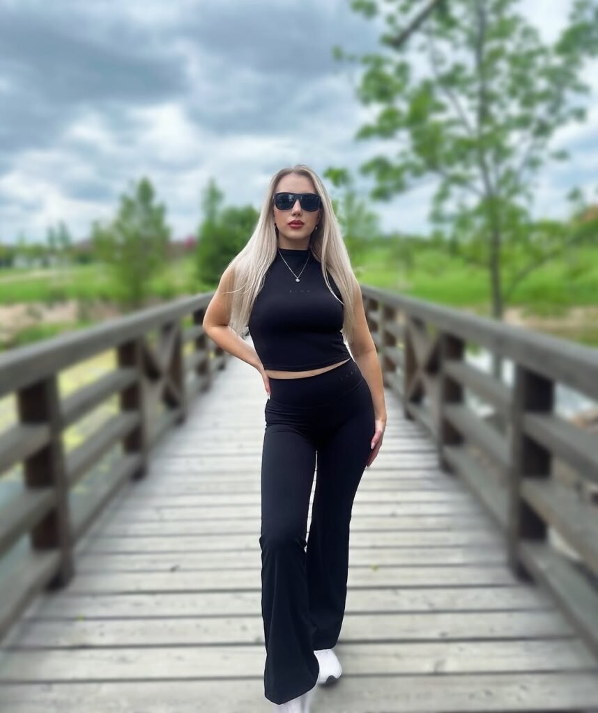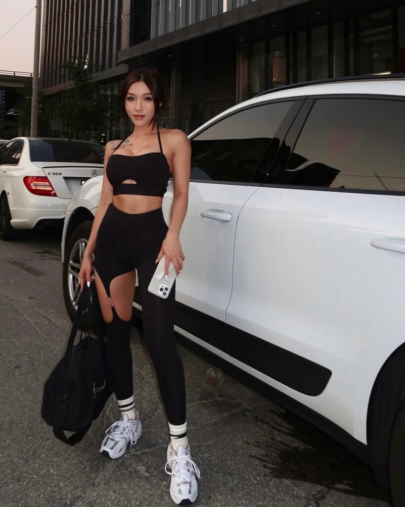 Perfect for those who want to make a statement while staying active, this gym outfit blends modern fashion with fitness.