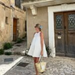 The woven bag and neutral sandals keep the look grounded and airy, making it an easy choice for both casual days and slightly dressed-up moments.