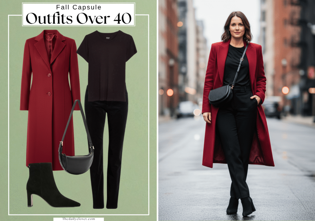 The result is easy formulas you can repeat: a bold red piece, grounded neutrals, and clean lines that carry you from desk to dinner without overthinking.